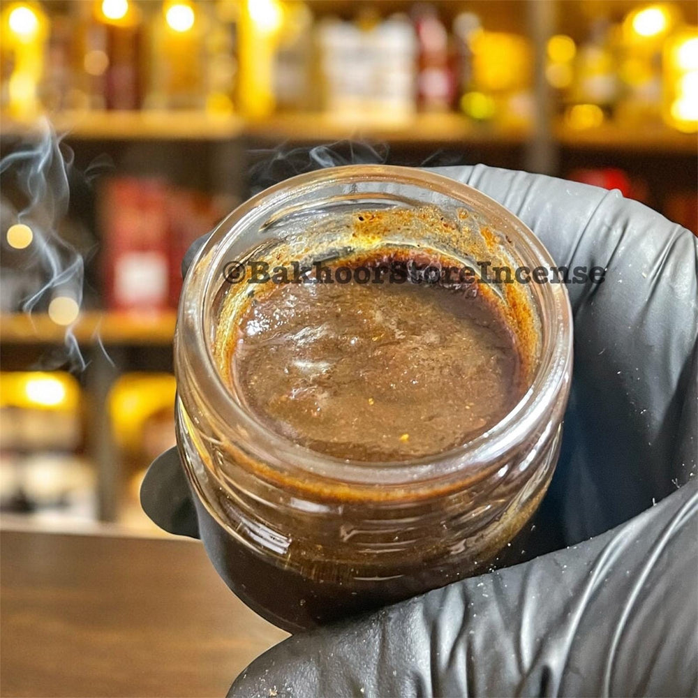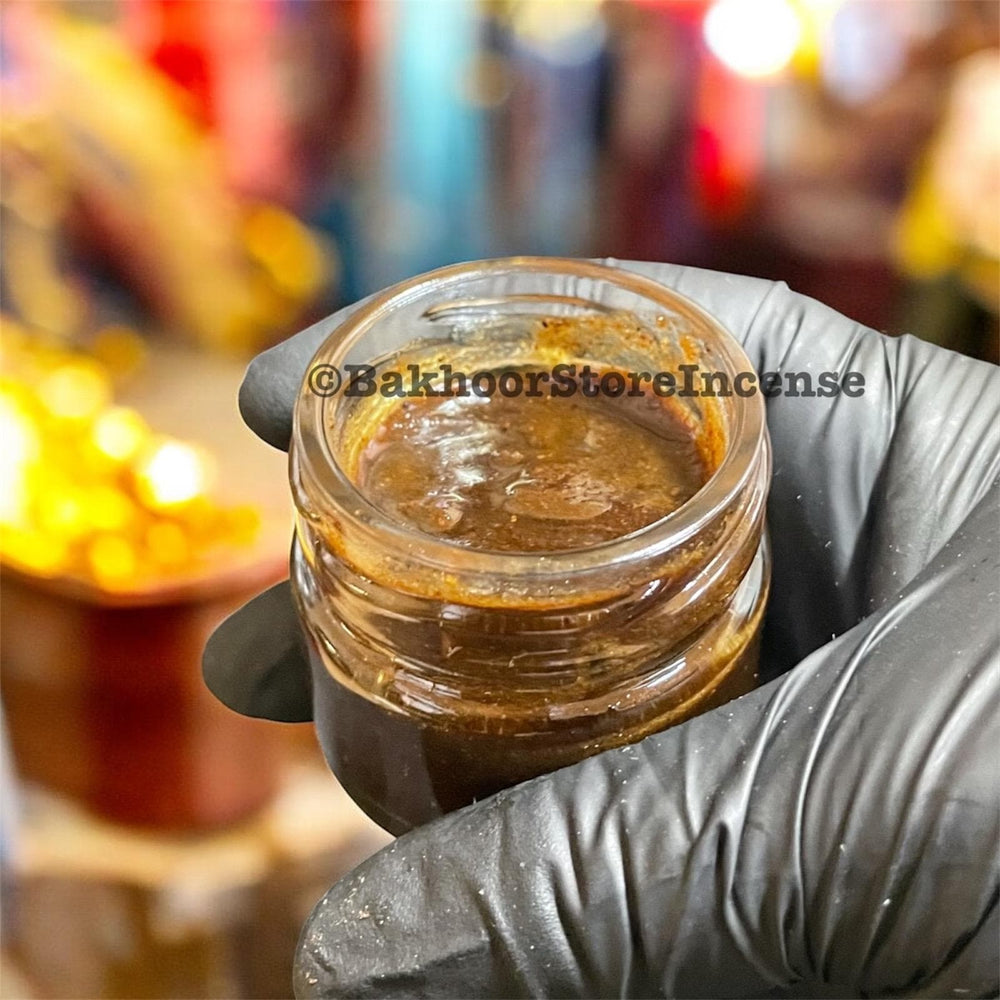 Straight from the kitchen of one of Aden’s most experienced bakhoor and traditional attar maker, this age-old hair spice and fragrance oil is now ready to offer in-store. My aunt, who has been the creator of bakhoors such as Yemeni Bridal, Ruh-alQudus and Yemeni Resala, has once again created this al-akhdriane for us. Considered an aphrodisiac oil amongst Yemeni women, this hair fragrance is truly special. This olfactory aphrodisiac is a brew (makhmaria) of the finest oudha, saffron, clove, cardamom, cherry seeds (mahlab), amber, agarwood oil, black pepper, sandalwood, vetiver, onycha and a medley of florals and essential oils. The ingredients are pounded with hand and then smoked with special bakhour and mixed with oils to form an aromatic creamy liquid like the zabaad.